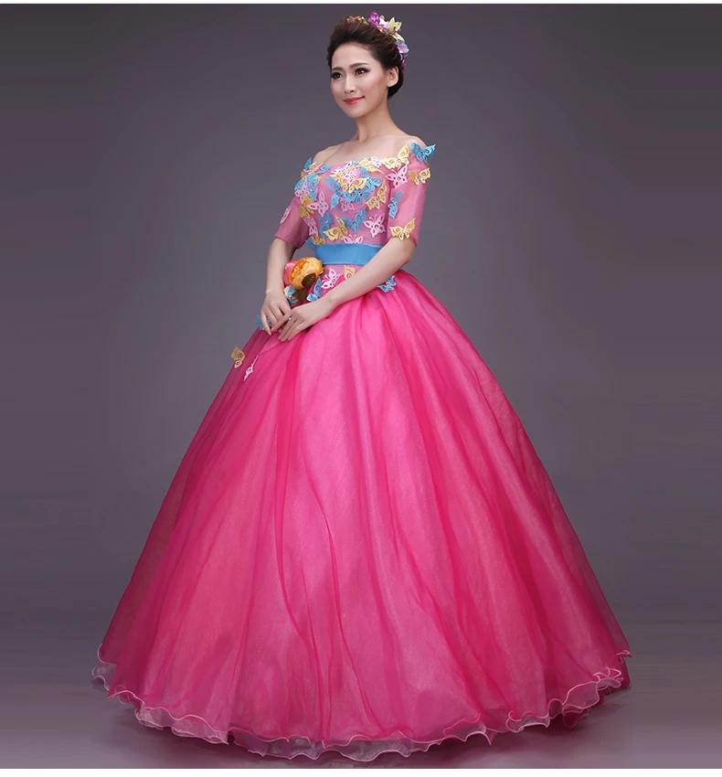 100%real butterfly rose flowers hot pink medieval dress Renaissance Gown princess Victorian/Marie A