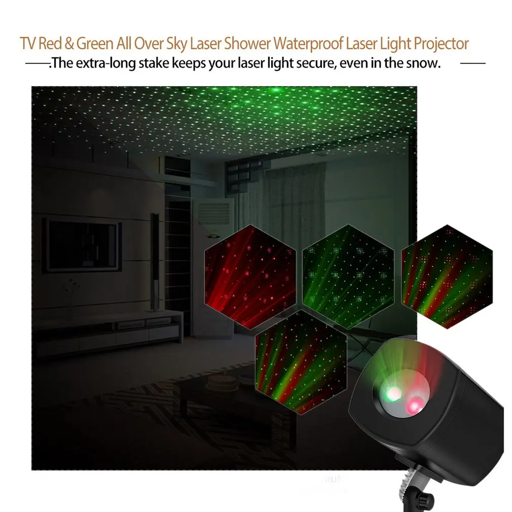 TV Red & Green All Over Sky Laser Shower Waterproof Laser Light Projector Holiday Twinkling Star Li