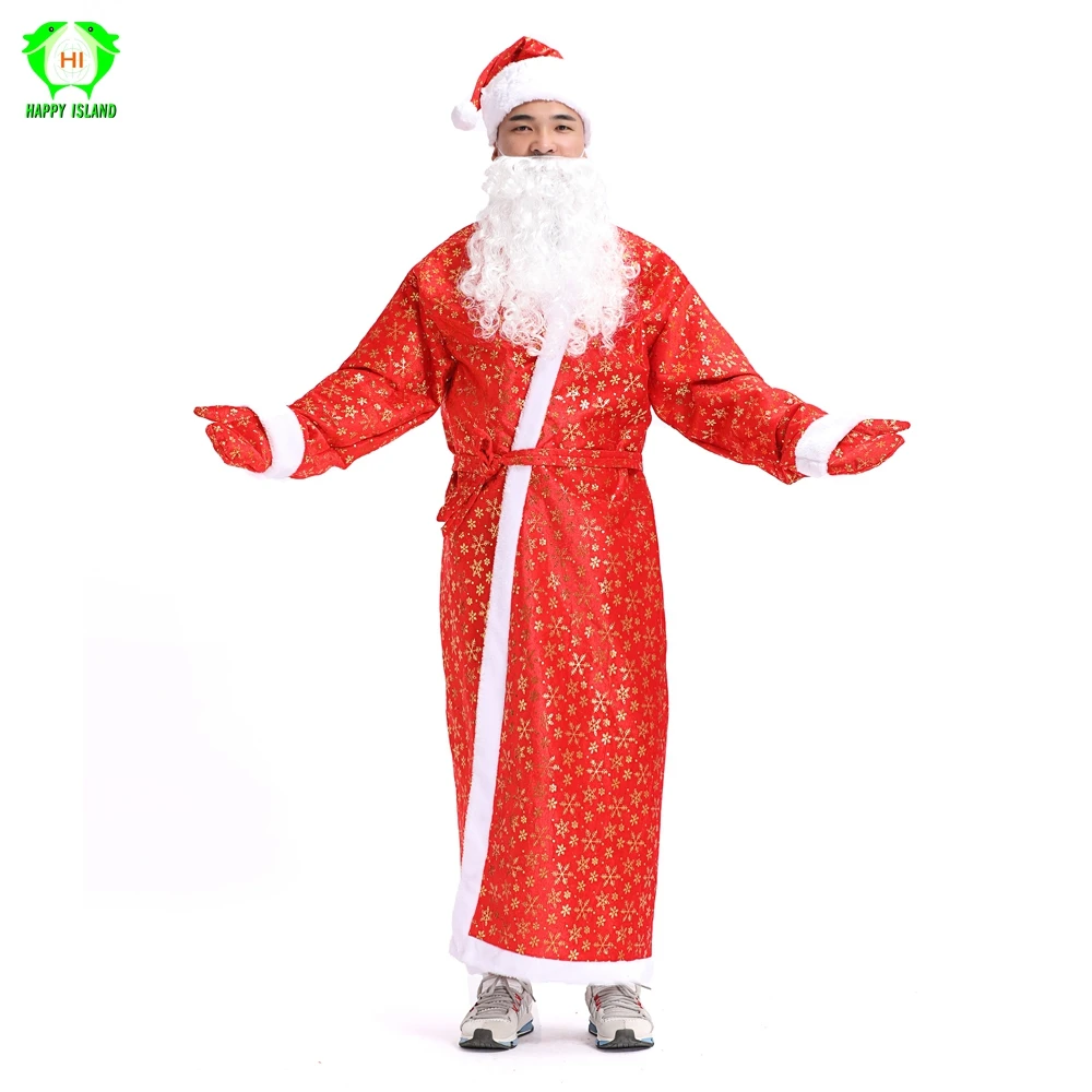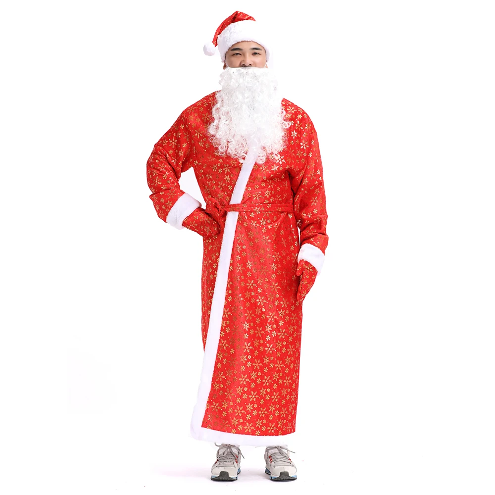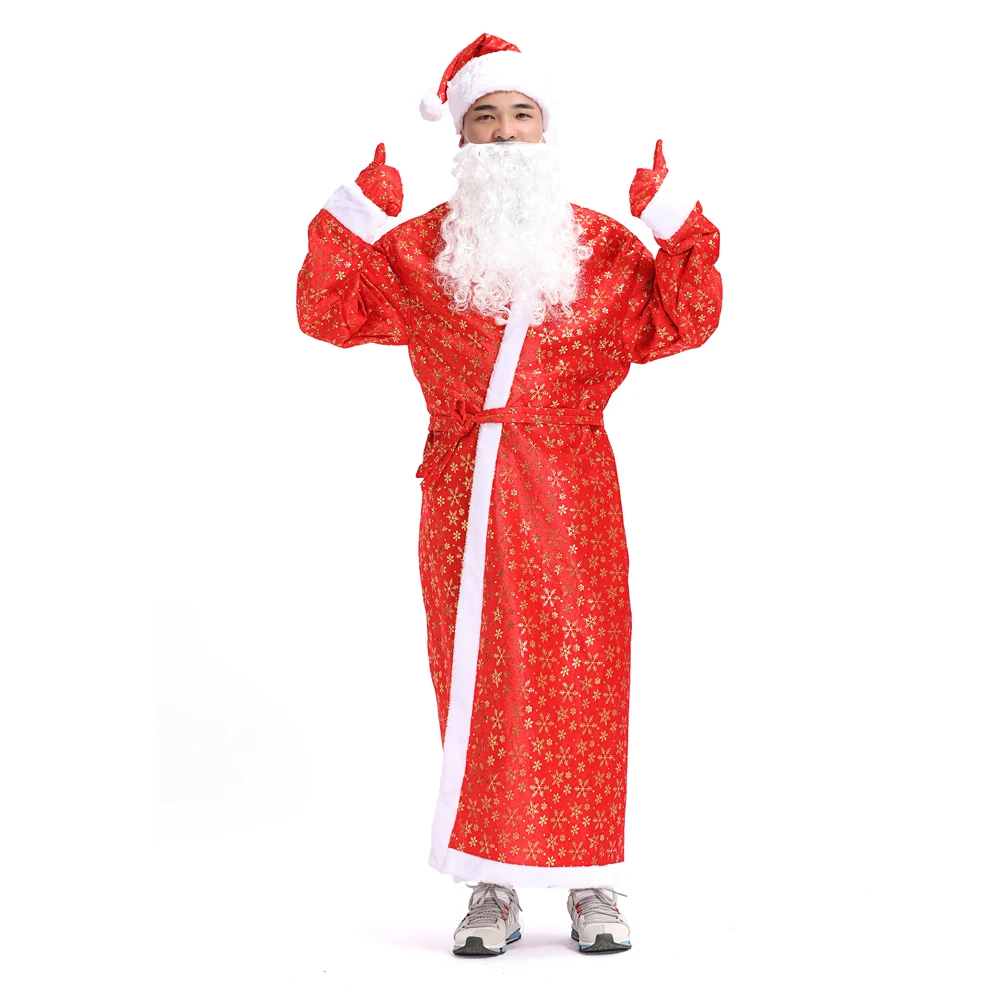 New Men Santa Claus Christmas Costume Flocking 5 Pieces of Accessories Christmas Red Cosplay Dress